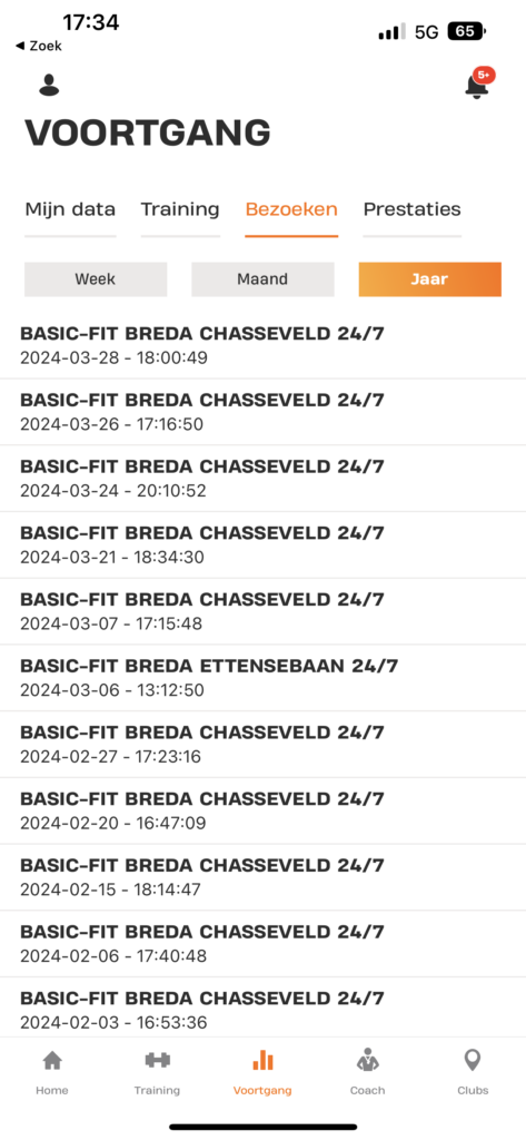 Hierboven staan de bezoeken aan de Basic-Fit, deze bezoeken waren allemaal +/- een uur lang. Tijdens deze bezoeken was ik voornamelijk bezig met cardio en krachttraining. Hiervan heb ik zeker het voordeel gemerkt. Niet alleen ben ik erg veel afgevallen, maar ook een stuk beter in mijn vel omdat ik vaak in beweging was waardoor de rest van de dag top voelde. In totaal ben ik hier zon 15 +/- uur geweest